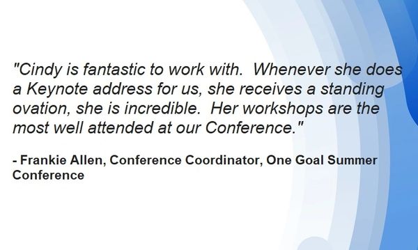 Are you ready to Achieve Corporate Excellence? Then you are ready for Cynthia to present an engaging and on-point presentation for your organization! Cynthia's areas of expertise includes program delivery to national, state, and local conferences/conventions through keynotes, training workshops, on-site training programs, business/board retreats and teambuilding events. With every program objectives are carefully planned and achieved by understanding the specific need's of her clients.